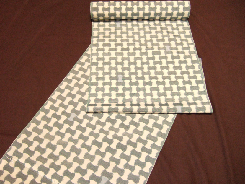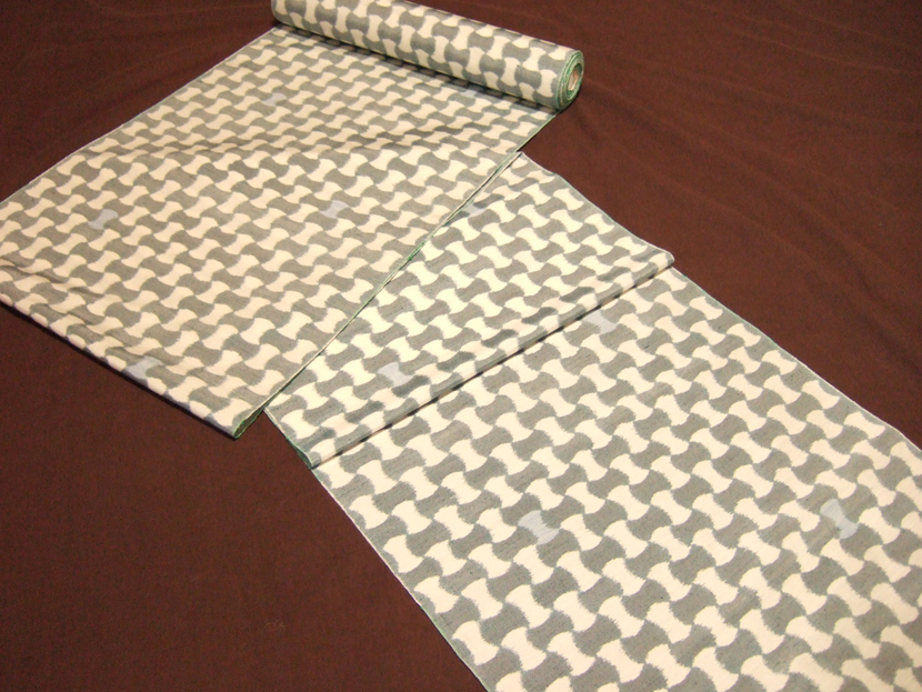 分銅/絣/紬/藍色/吉祥柄/青磁/紬着物/オシャレな着物紋/普段着/普段着の着物/紬着物/絣着物/