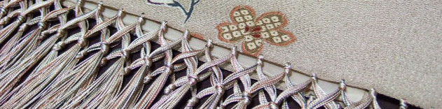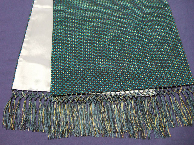 着物、羽織、コートを仕立てた後に大幅に残った残布(余り生地)でショールを作りませんか。 京都の職人が生地の色合いに合わせ飾り房の色を糸から合わせております。 また、裏生地もお預かりした生地に合う滑りの良い生地(着物の胴裏調化繊)をを使用し仕立て上げます。 仕上がりは長さ四尺ぐらい(約150cm)巾九寸(約35cm)です。 加工後の長さはお預かりいたしました生地の長さにもよります。 |